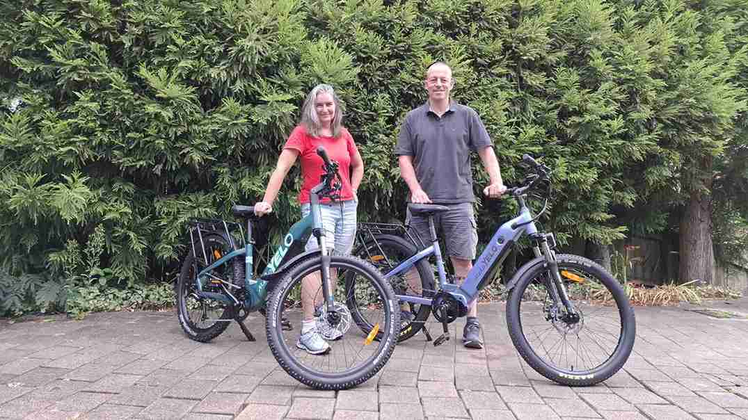 Their first introduction to the idea of e-bikes was when Juergen’s parents in Germany said that they had each bought one so they could continue to enjoy their local rides. Juergen’s dad even has a trailer on the back for the dog!
